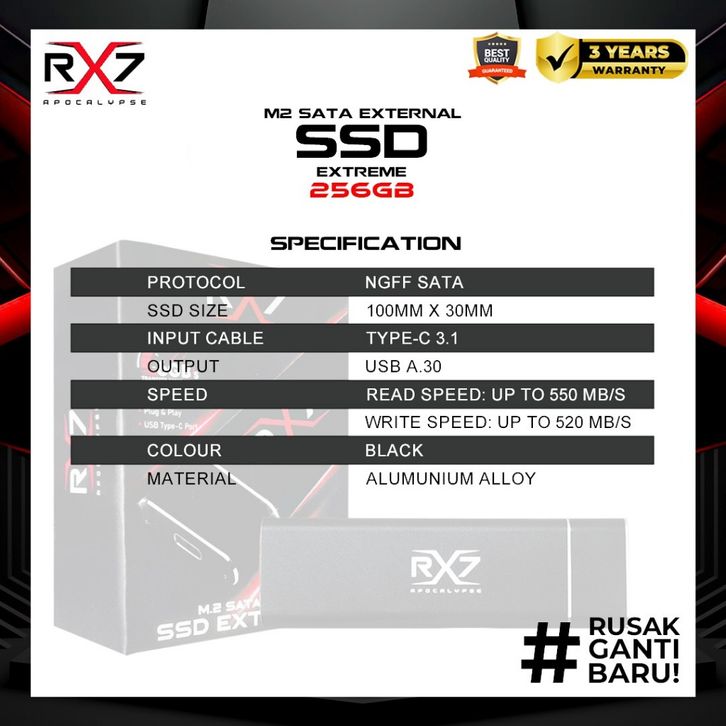 TERMURAH ✅ TANPA DP ✅ Enclosure M.2 NVME RX7 / External case M.2 NVME type C USB 3.1 RX7 + 128GB