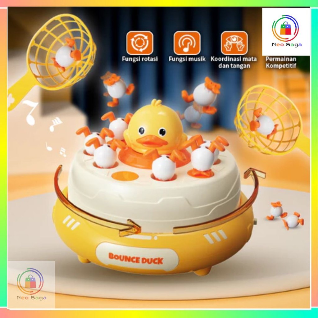 (NEO) Mainan Edukasi Bebek Berputar,Permainan Tangkap Bola Lompat untuk Anak, Melatih Ketangkasan
