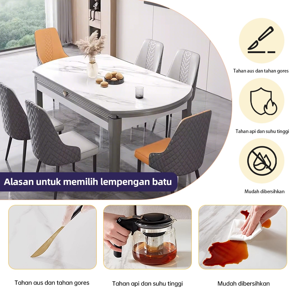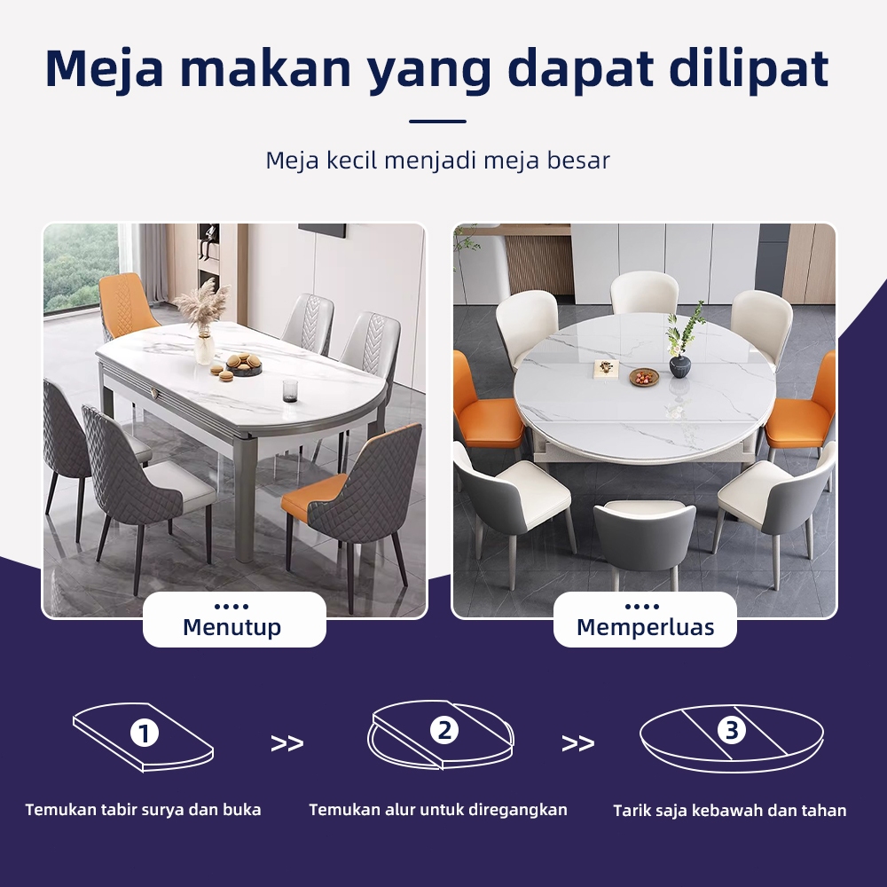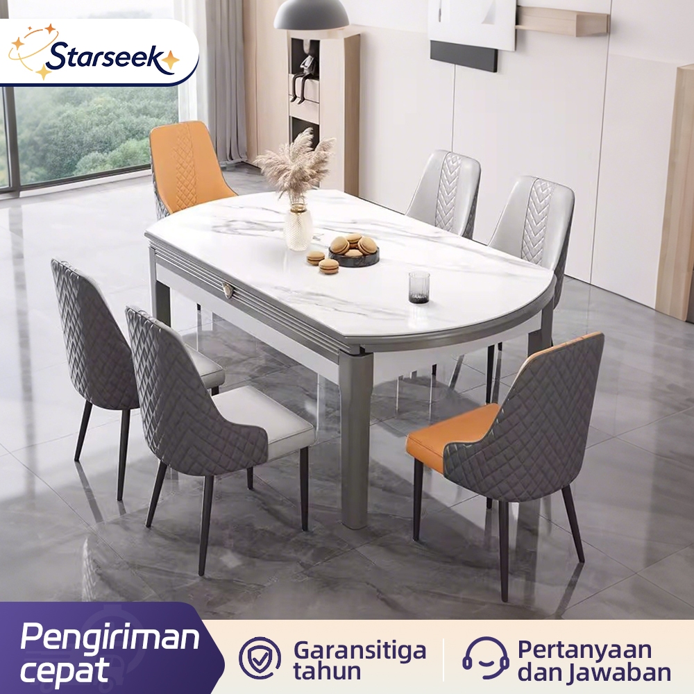 STARSEEK Meja makan papan batu sederhana modern/meja lipat rumah mewah ringan/apartemen kecil menjadi meja bundar