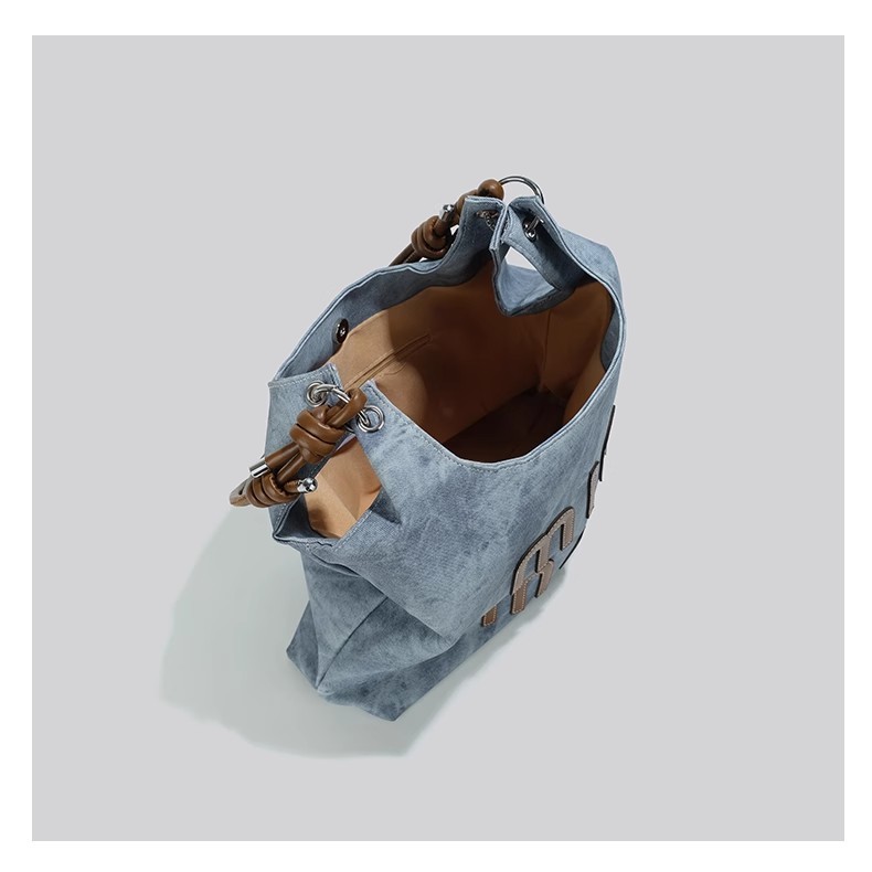 Tas Retro Kapasitas Besar Tas Wanita Cetak Alfabet Cetak Tote Serut Bahu Tas Ketiak Kanvas Selempang