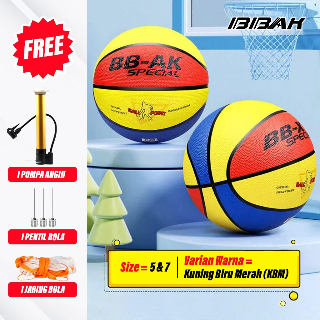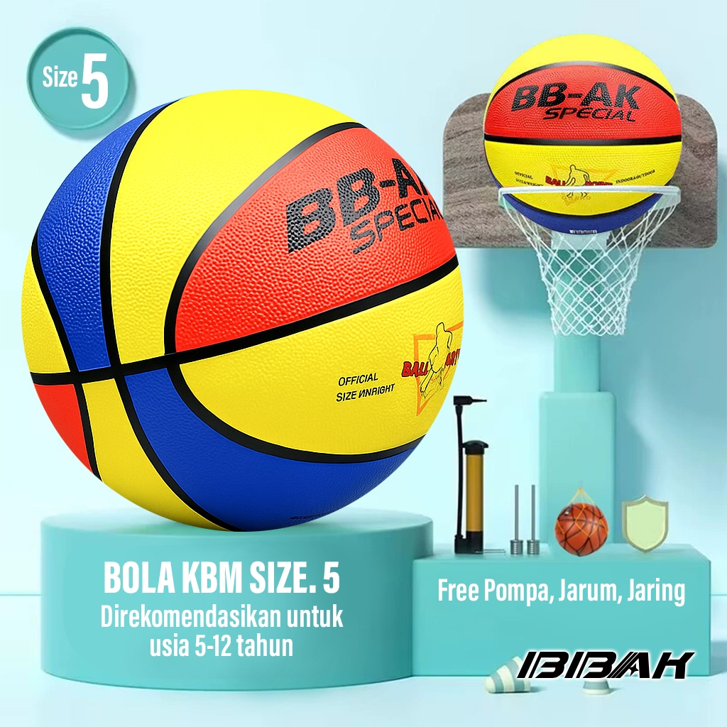 Bola Basket Anak-Anak Size 5 & 7 Warna Menarik, Cocok untuk Latihan & Bermain XTRA POMPA, PENTIL, JARING
