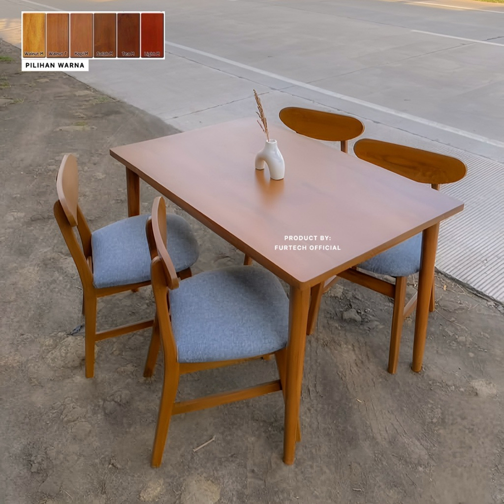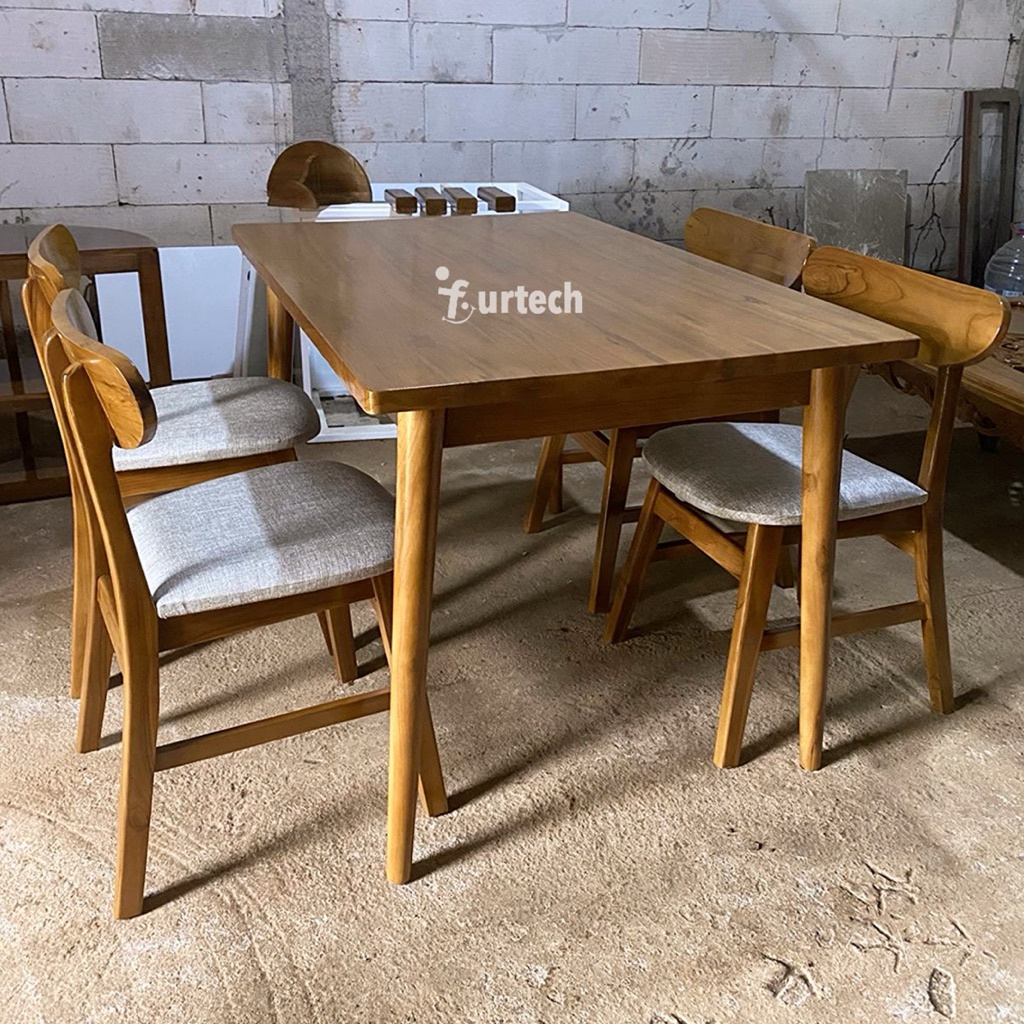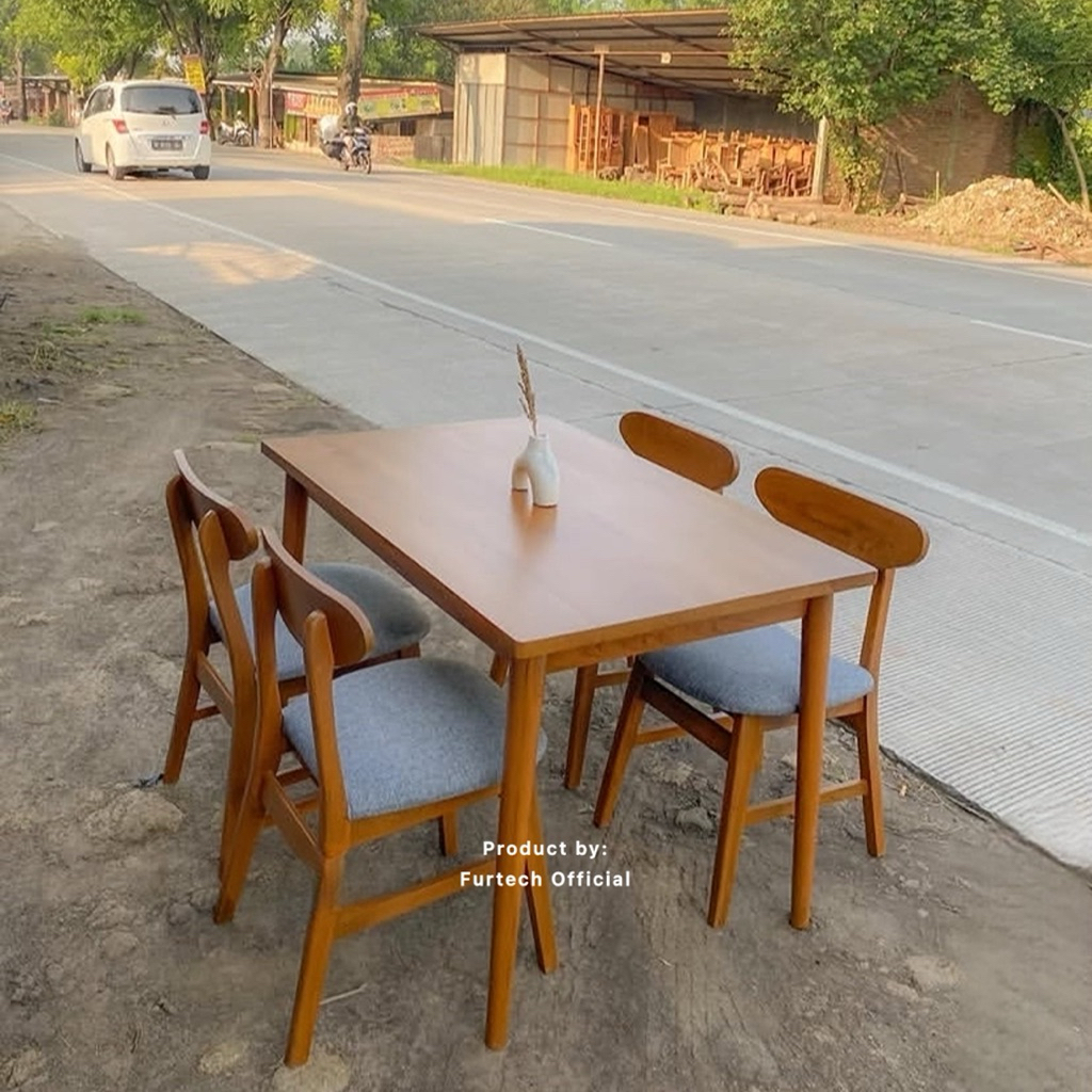 Set Meja Makan Cafe Kayu Jati Solid 4 Kursi | Minimalis Retro Natural Estetik