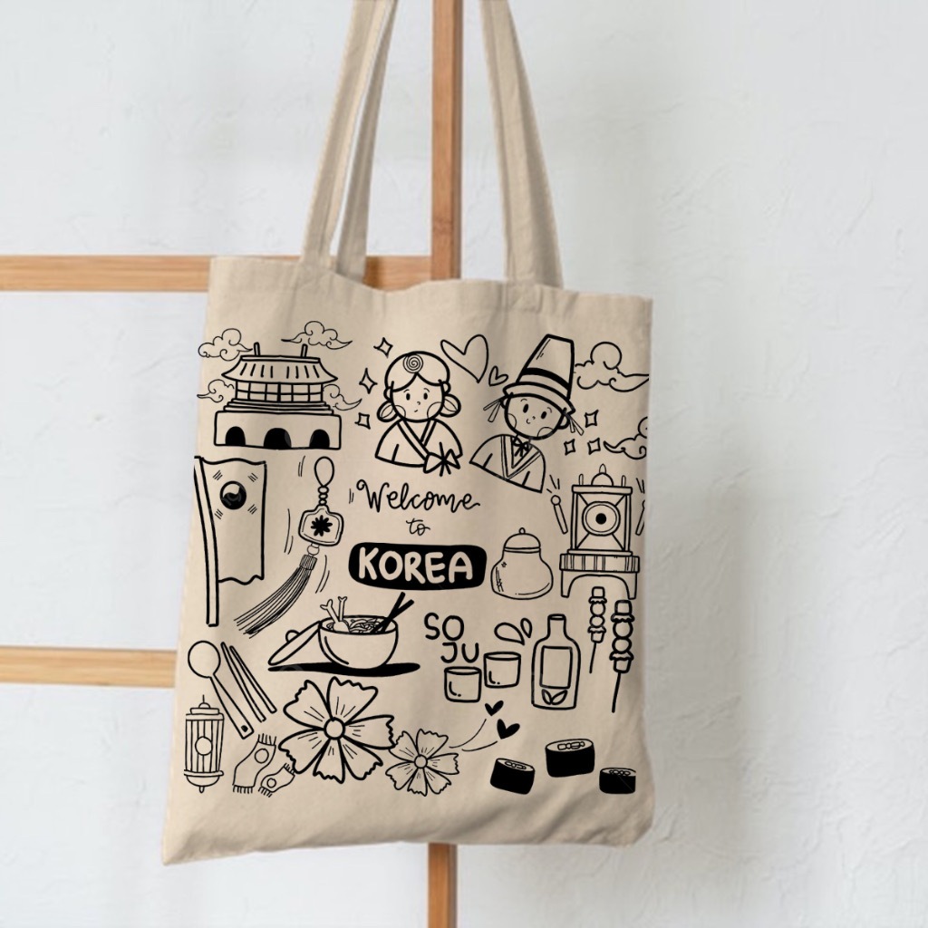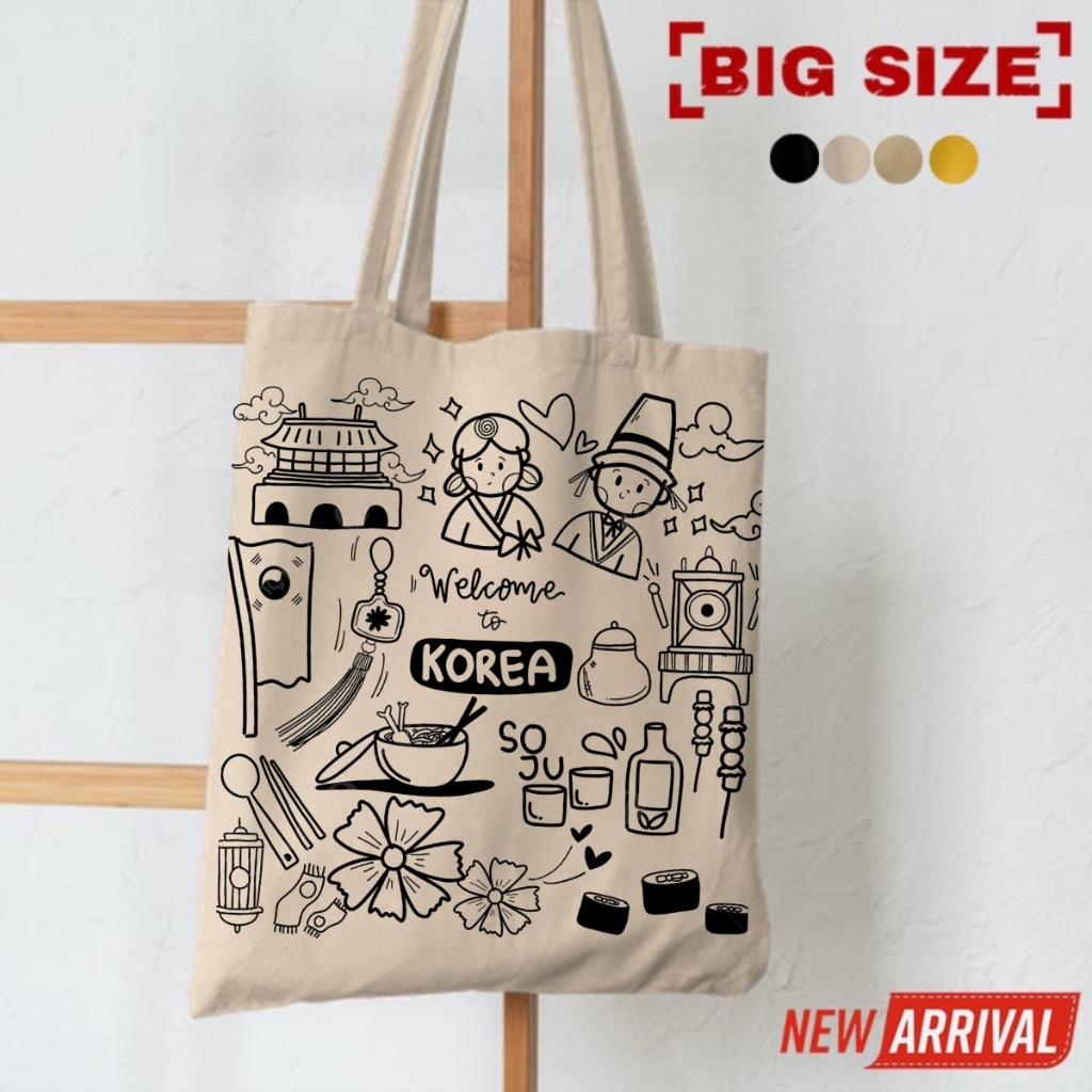 HOT SALE 7.7 TAS TOTE [RESLETING] TOTEBAG WANITA MOTIF KOREA BAHAN SEMI KANVAS UKURAN 35x40 CM MUAT LAPTOP 13 INCHI - TO