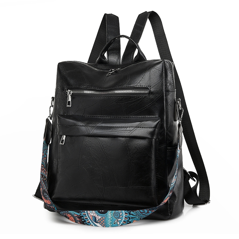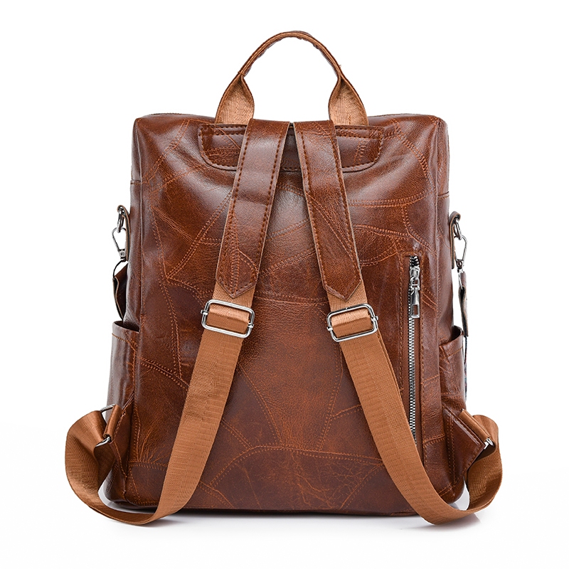 Waterproof Tahan air leather Kulit Ransel 14 inch Laptop tas Besar bag Perempuan Wanita tas bkpk Sling shoulder Multifu