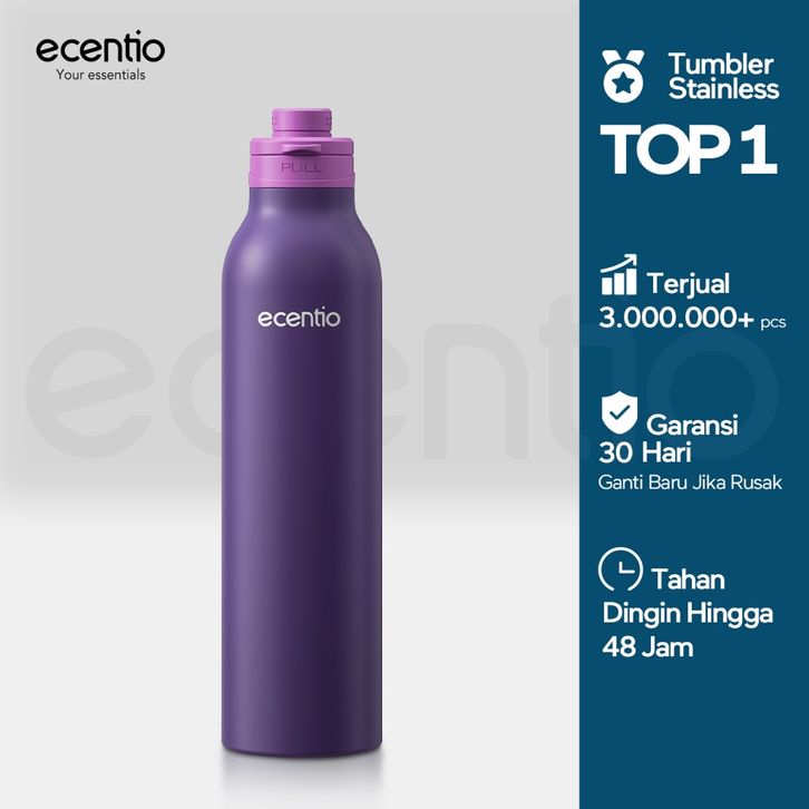 ecentio Tumbler Stainless Steel Portable Botol 800ml Ungu Malam/Pink Senja Termos Air Tahan Panas 24 jam handle