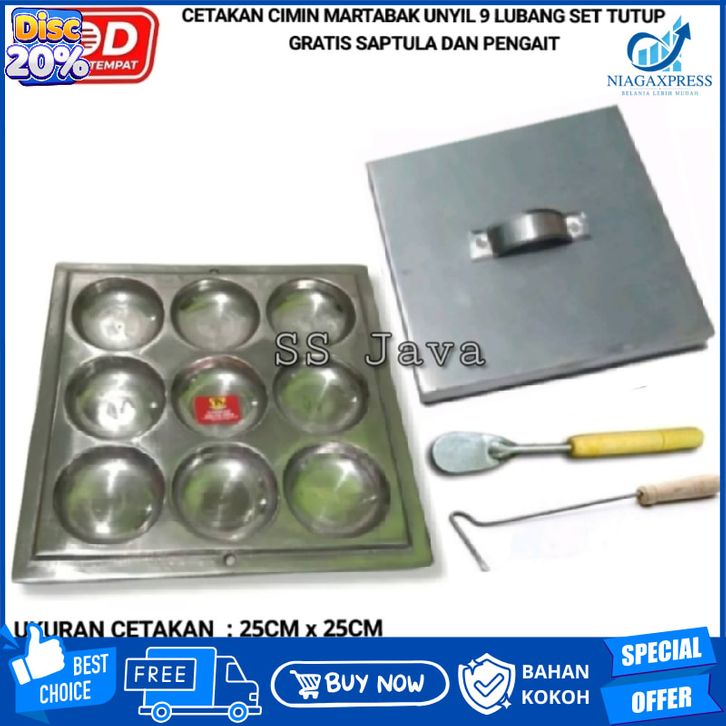 Cetakan cimin / Cetakan kue loyang cimin martabak mini SET TUTUP lubang 9 set tutup gratis spatula dan pengait