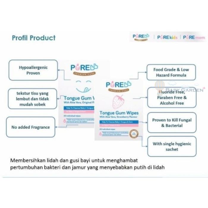 Pure baby pembersih lidah gusi tongue and gum isi 20 sheet - Original - original