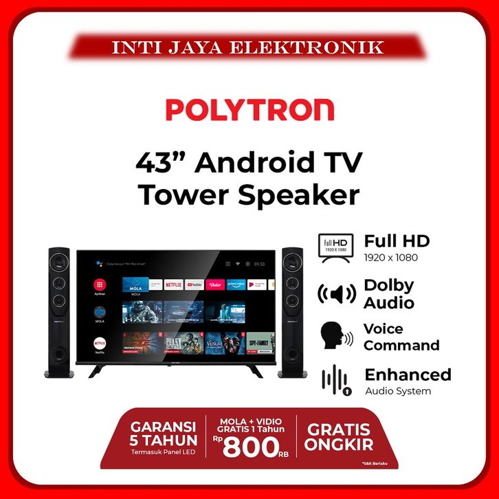PROMO TV POLYTRON 43 INCH ANDROID TV TOWER SPEAKER 43TA5055 GARANSI RESMI 43INCH ORIGINAL