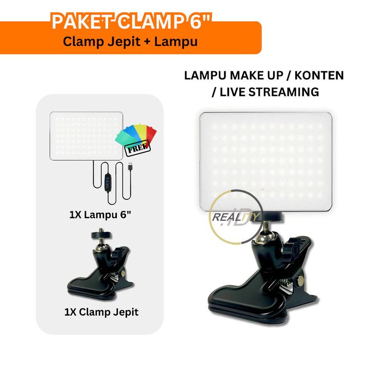 PAKET LAMPU FOTOGRAFI LIVE PENJEPIT CLAMP BESI LAMPU LED RGB GK-LM8 LIVE STREAMING MUA USB 4 WARNA KONTEN KREATOR LIVE