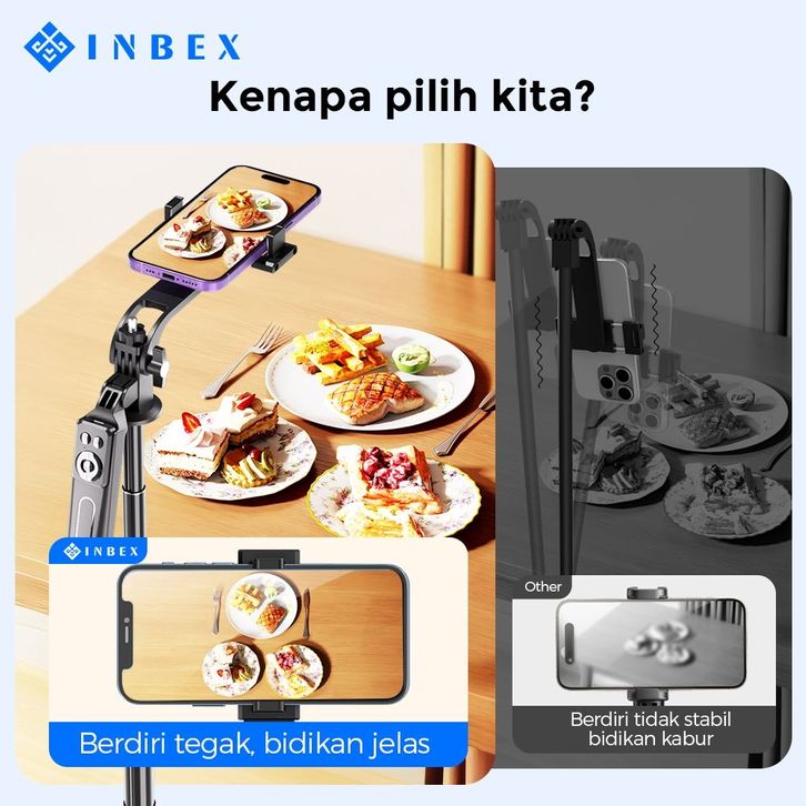 INBEX QT175 Quapod Tripod konten kreatorTripod Bluetooth Remote 1.8m Tripod Handphone portable Fillight Selfie Stick