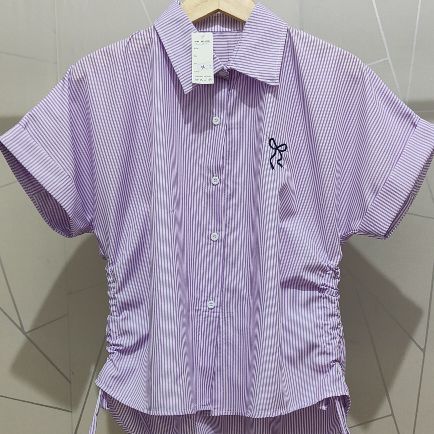 RK - SANIK | Stripe Shirt Kemeja Katun Salur Wanita - Atasan Motif Salur Bordir Pita