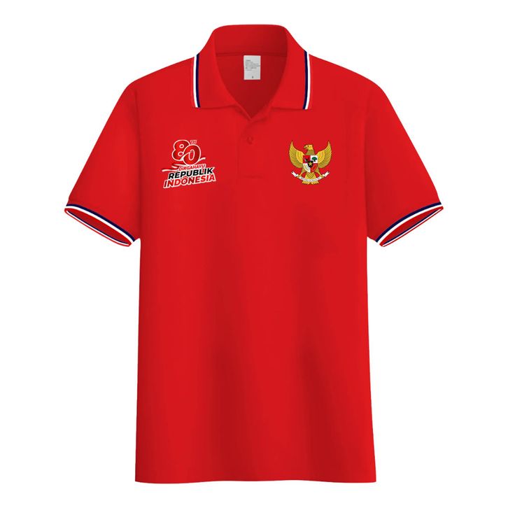 Kaos polo pria HUT RI 80 / Kaos Kemerdekaan RI 80th / Kaos 17 agustus 2025 / kaos pria merah List II