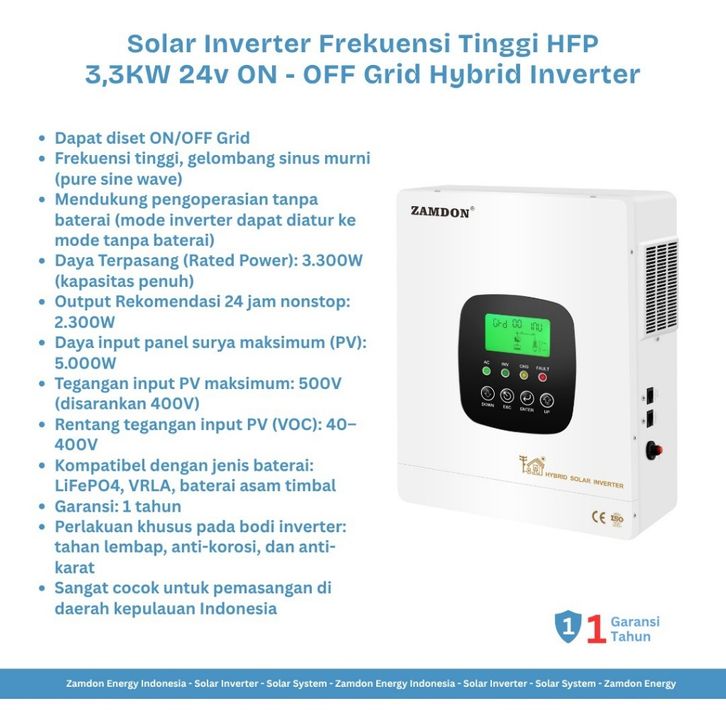 ZAMDON Inverter Hybrid Frekuensi Tinggi 4KVA 3.3KW 24V – ON & OFF GRID