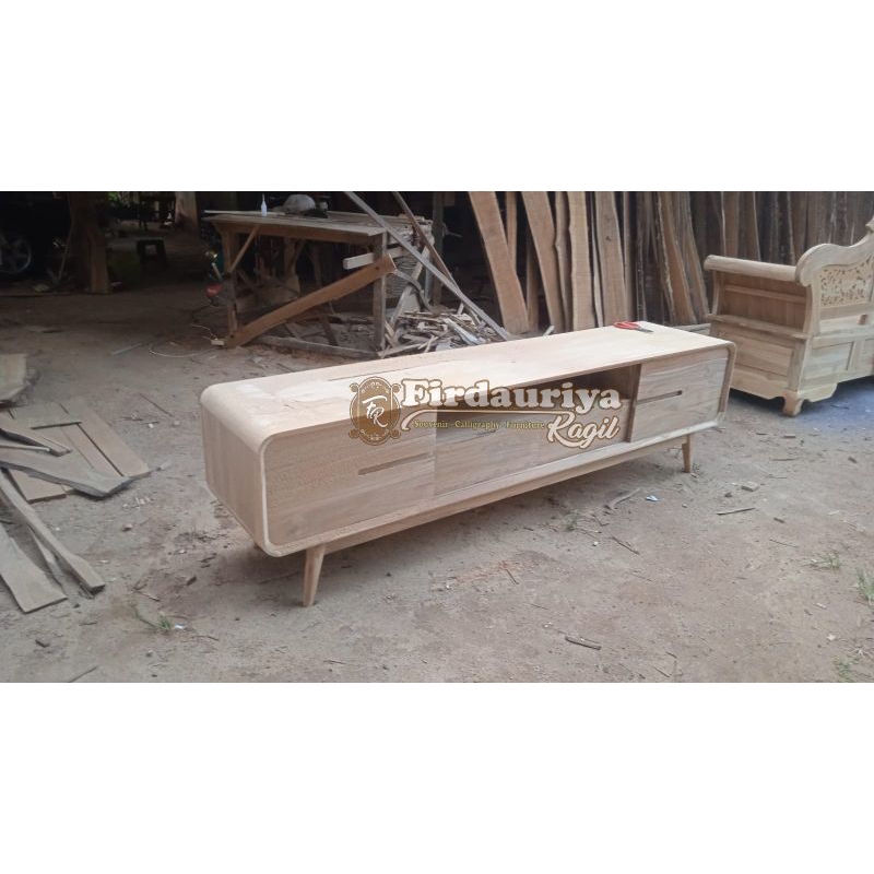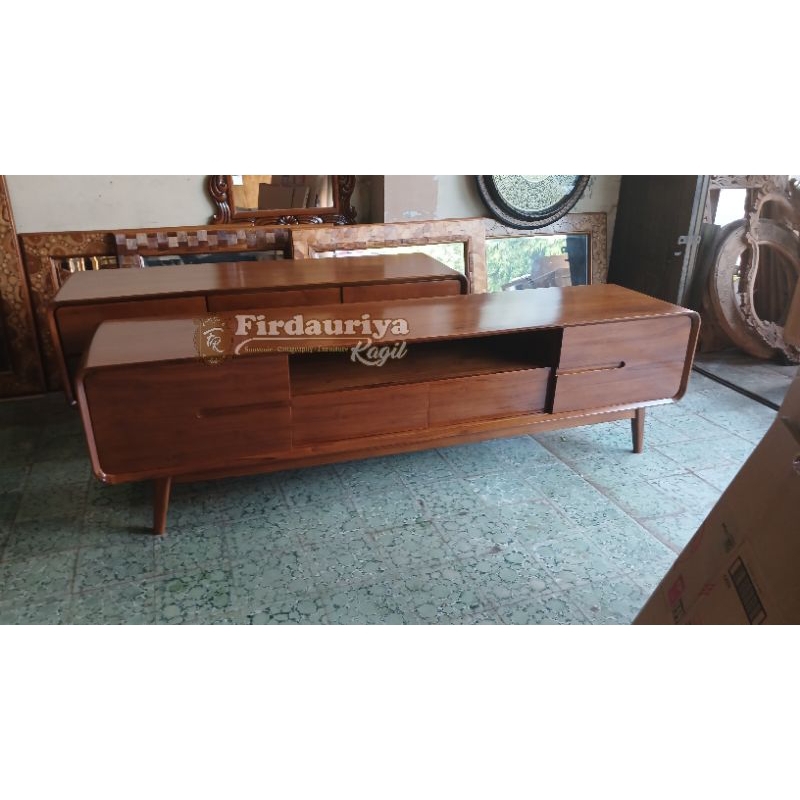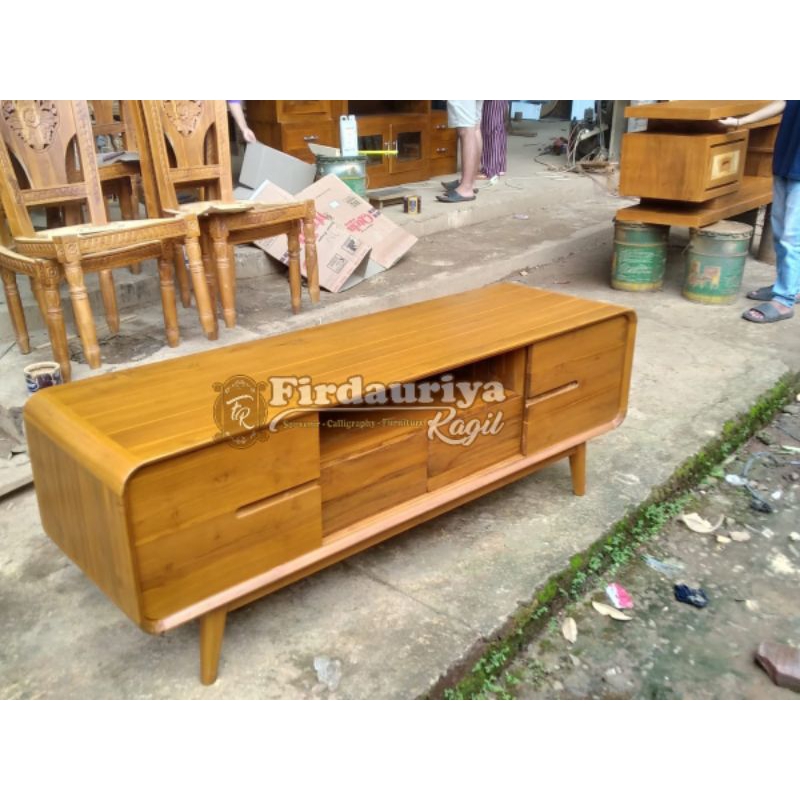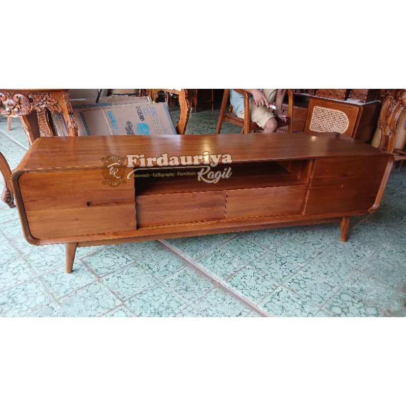 Buffet bufet bifet tv meja tv kayu jati perhutani grade A minimalis antik jepara mebel laci 2 lemari pintu buka tutup 2