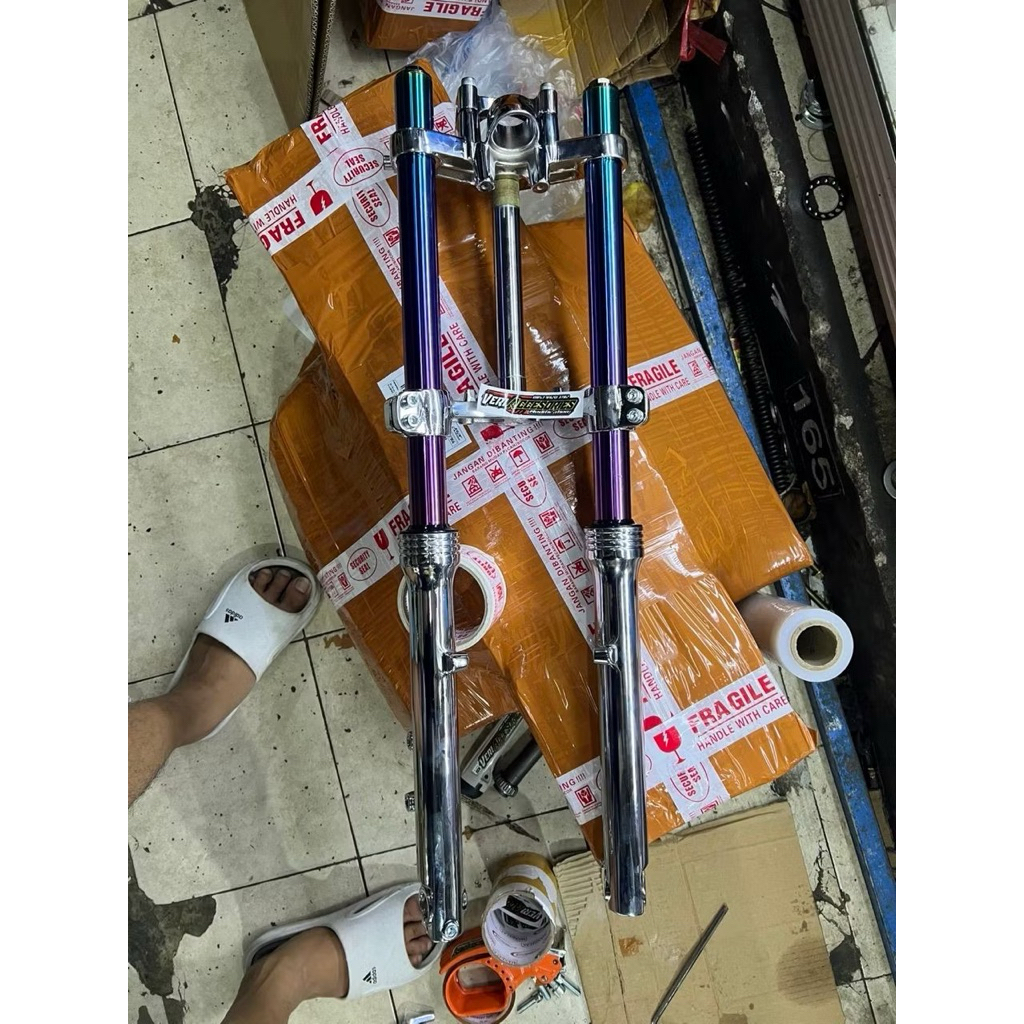 [Star] shock skok sok depan ninja RR full crome as blue pnp honda/yamaha