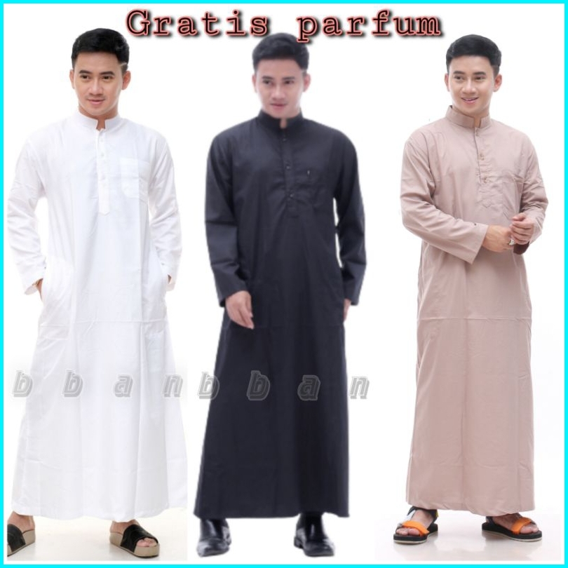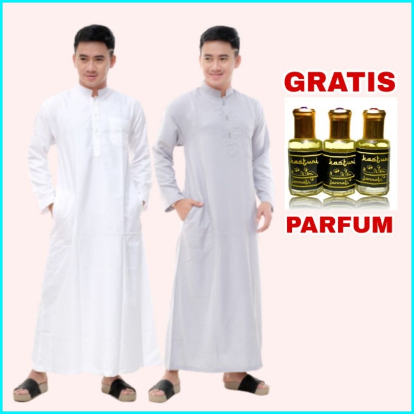 Jubah Pria Putih Polos Gamis Pria Dewasa Jubah Saudi Lengan Panjang