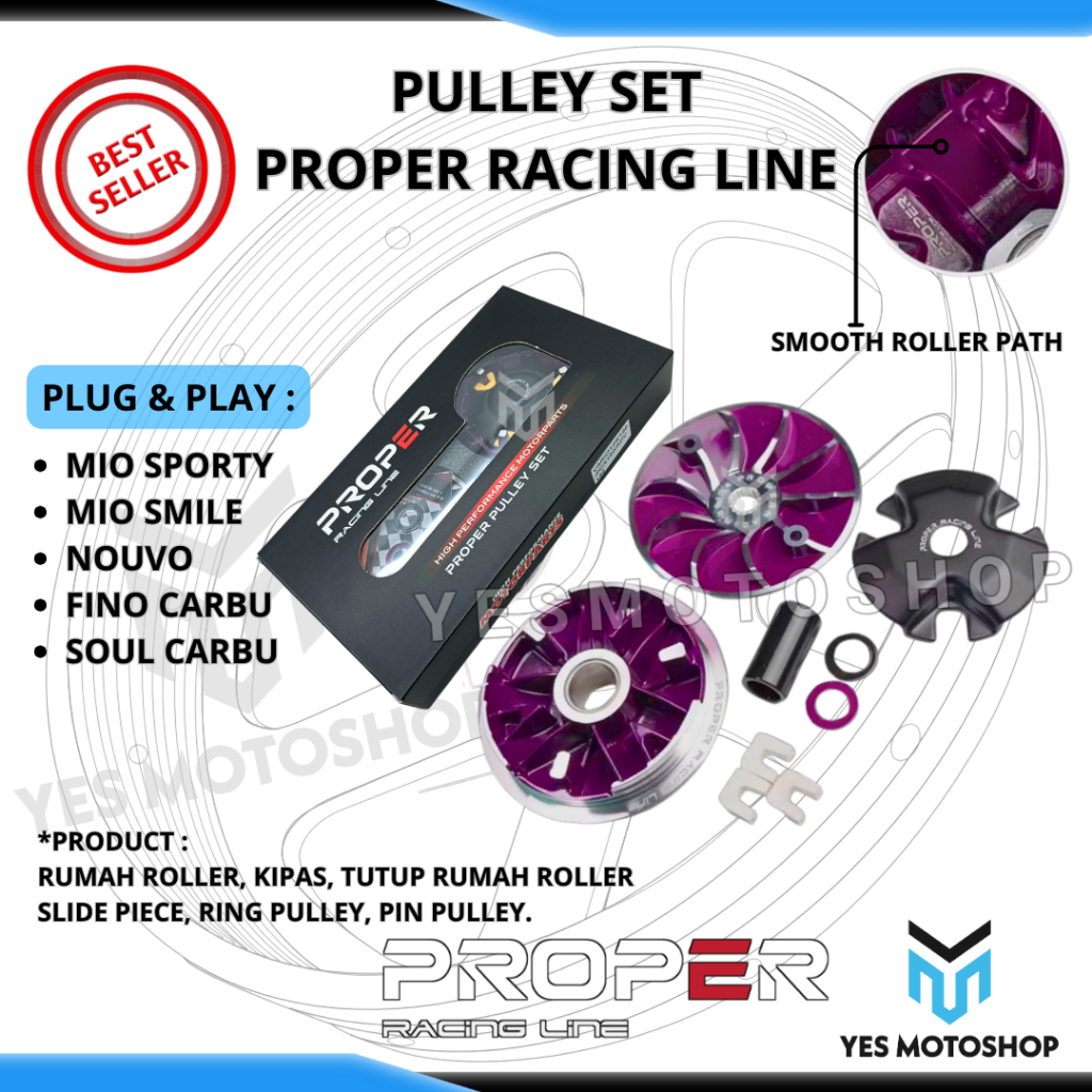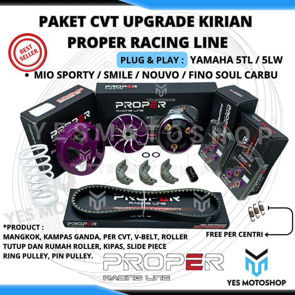 [Star] PAKET UPGRADE CVT PROPER RACING LINE MIO SPORTY SMILE NOUVO SOUL CARBU PULLEY SET MANGKOK ROLLER