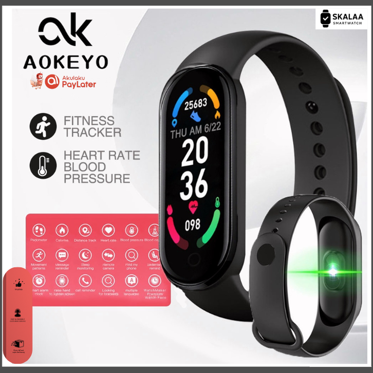 Smartwatch Aokeyo M6 Bluetooth Smartband Smart Watch Fitness Tracker Colour Display HeartRate Waterproof Jam Tangan Smar
