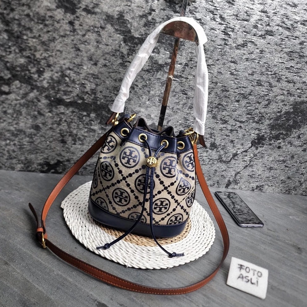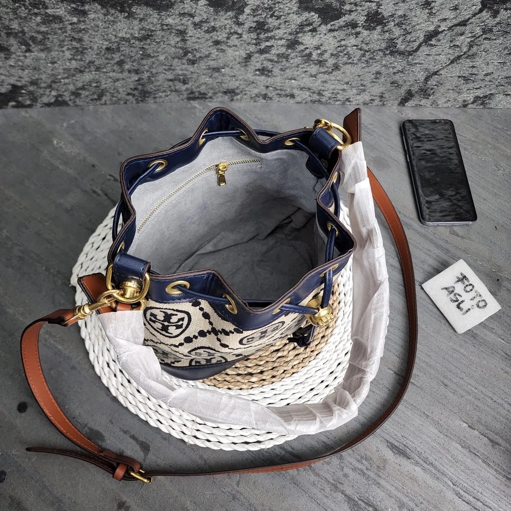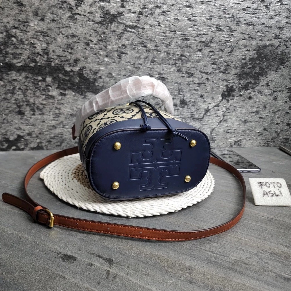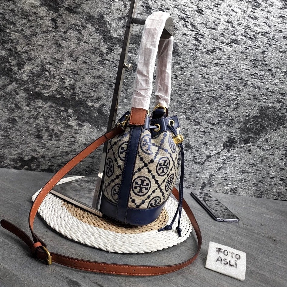 TAS WANITA TORY BURCH BUCKET BAG 9880 BLUE - FREE COVER BAGS + FULL SET