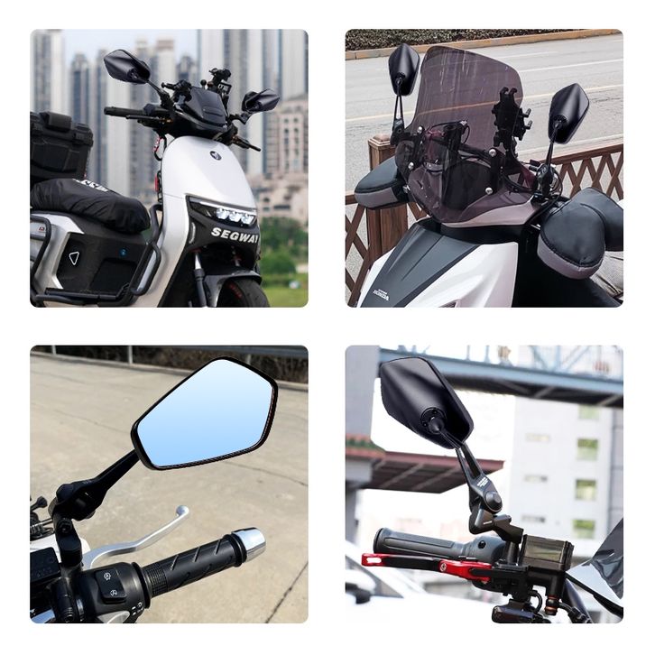 RK - Spion Motor Cermin biru dan putih anti silau/dapat diputar 360 derajat Motor Kaca Spion Lipat CNC