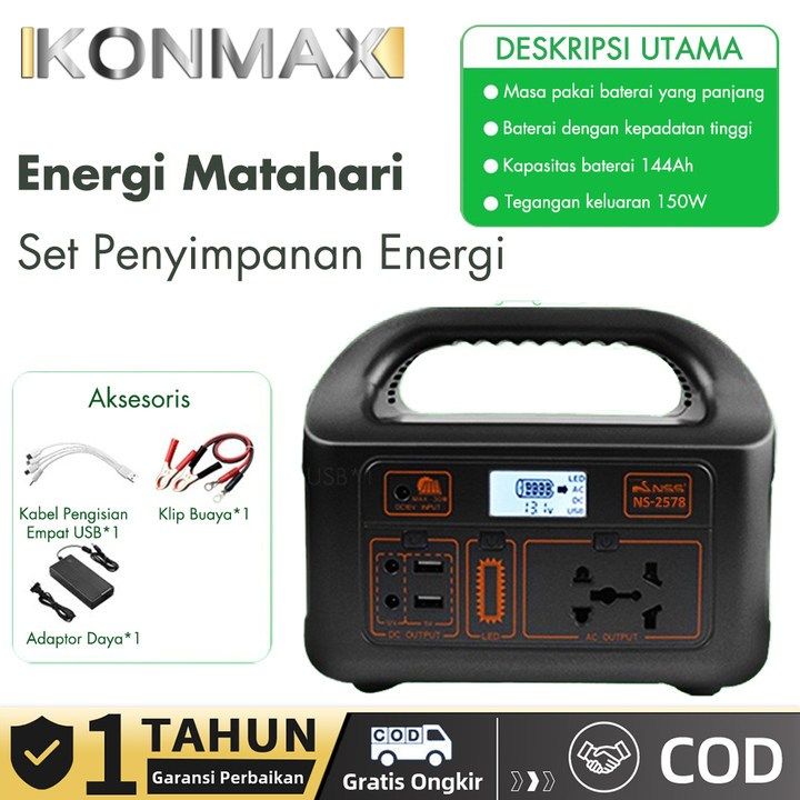 KONMAX Portable Power Station 220V 150W Generator Surya Luar Ruang Generator Portabel Solar Power Bank