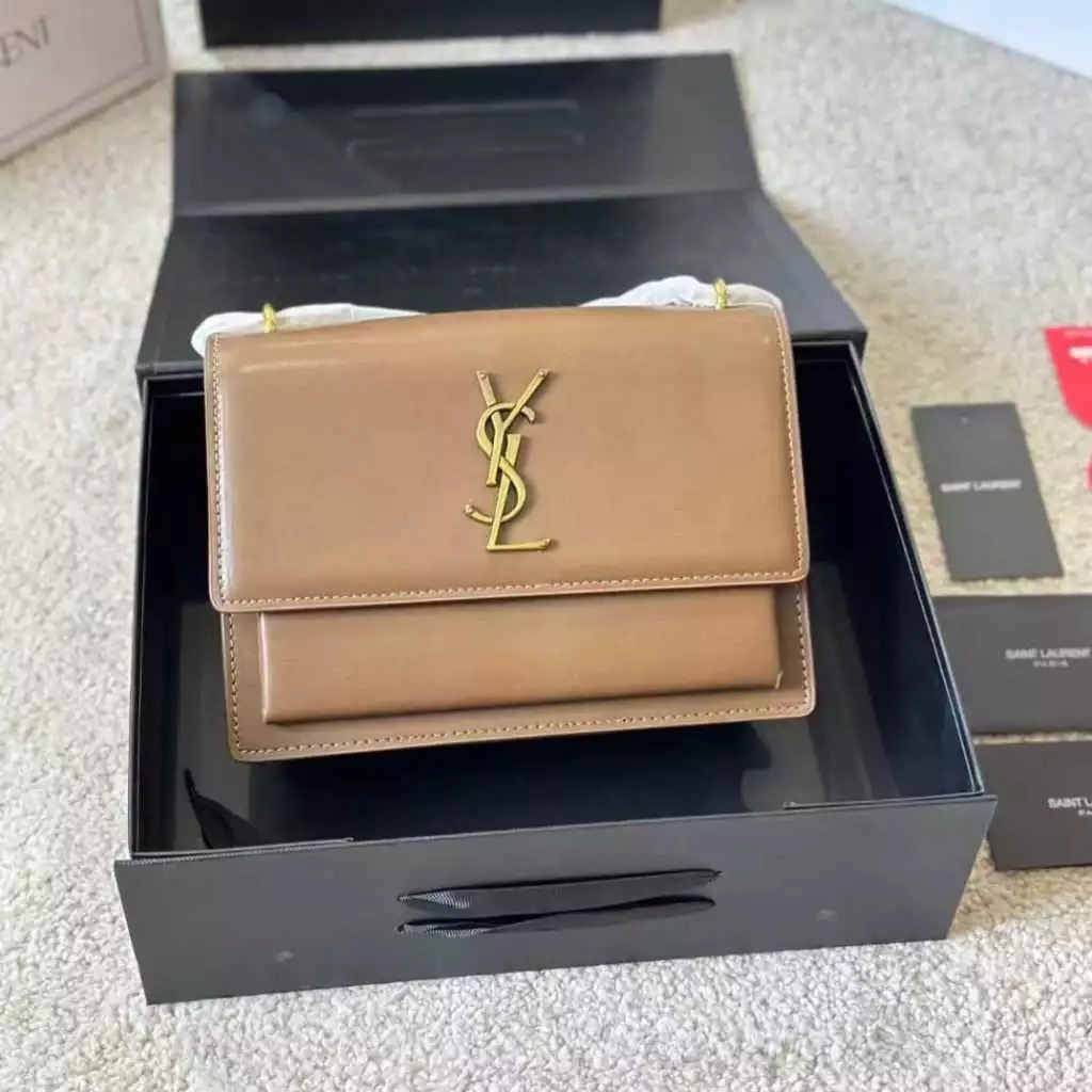 TAS WANITA YSL SUNSET SHOULDER BAG 21580 KHAKI - FREE COVER BAGS + FULL SET