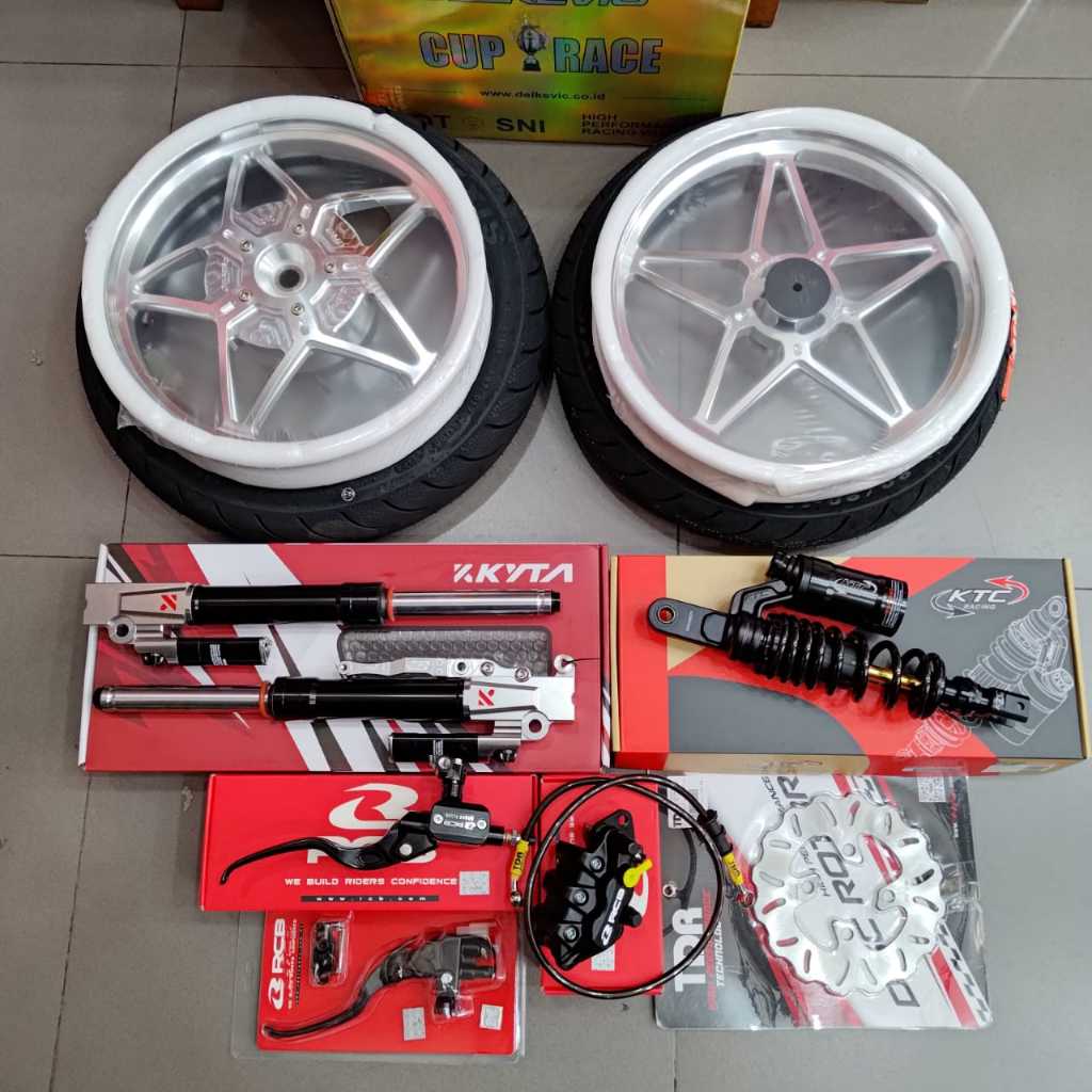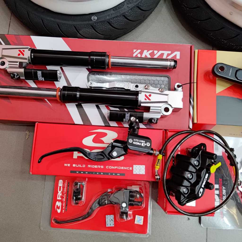 Paketan Full Set lengkap master rem RCB E3 Kanan kiri 14mm + Kaliper RCB 2 Piston + Selang rem 90cm + Disc +Shockbreaker