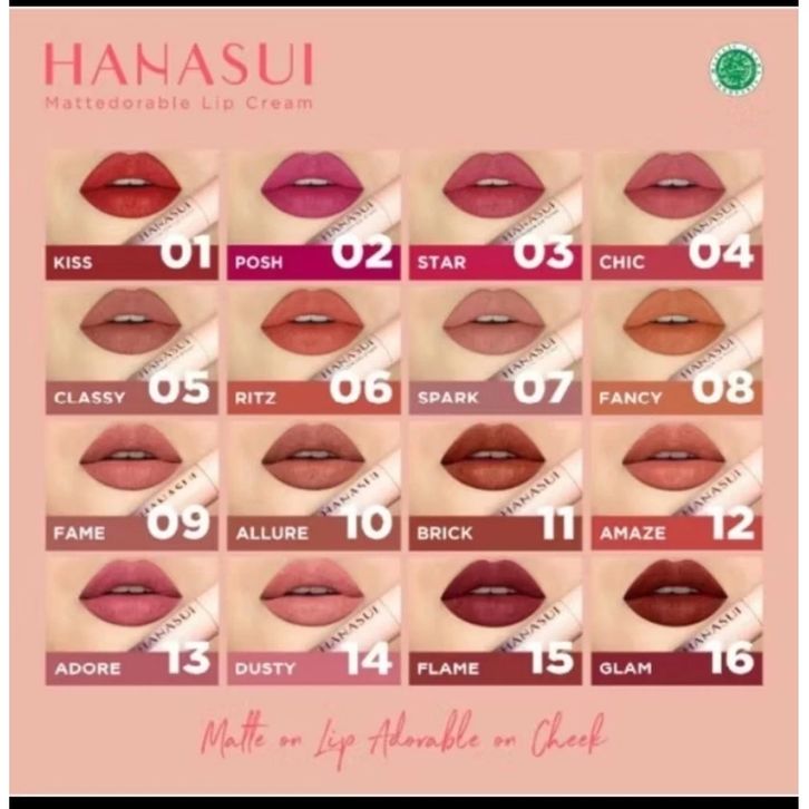 Lipstik Hanasui Mattedorable Lip Cream Series Premium Lipstik Tahan Lama Pigmented Non-cracking Best Seller