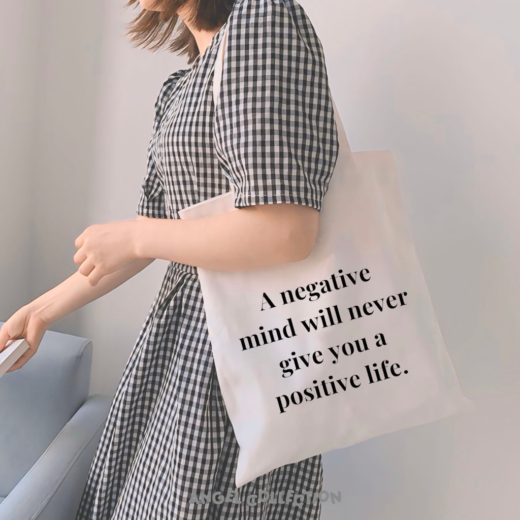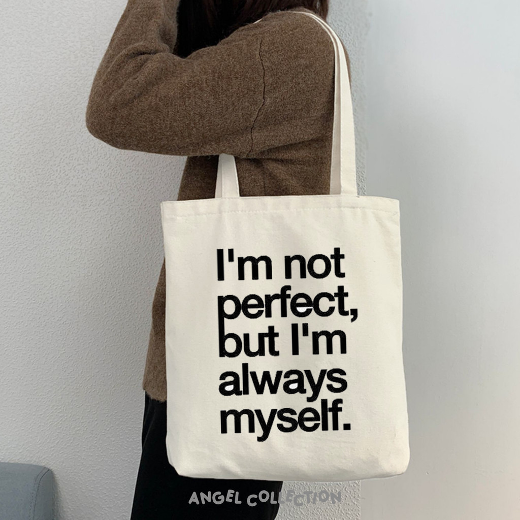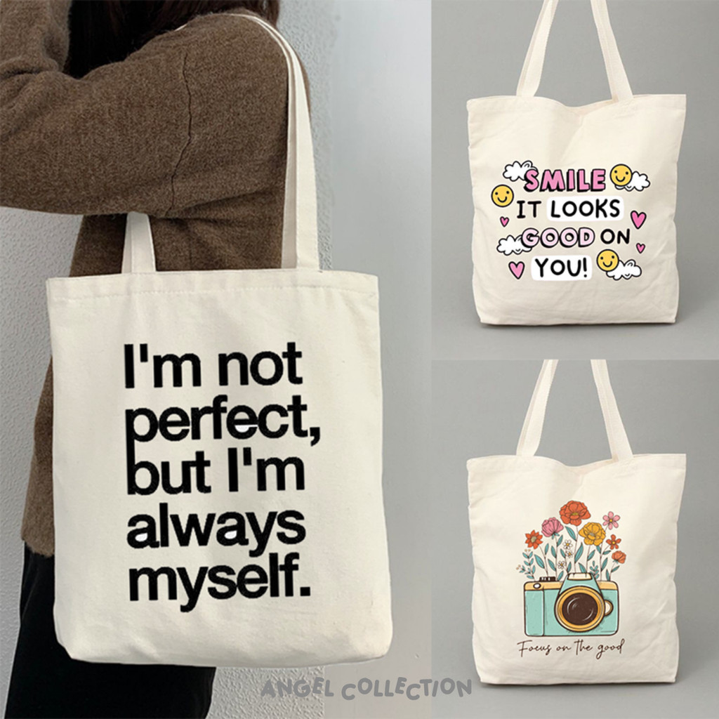ENJEL Tas Tote Bag 100% Kanvas Resleting Quotes Tulisan Motivasi Aesthetic Ukuran 30x40 Enjel Collection