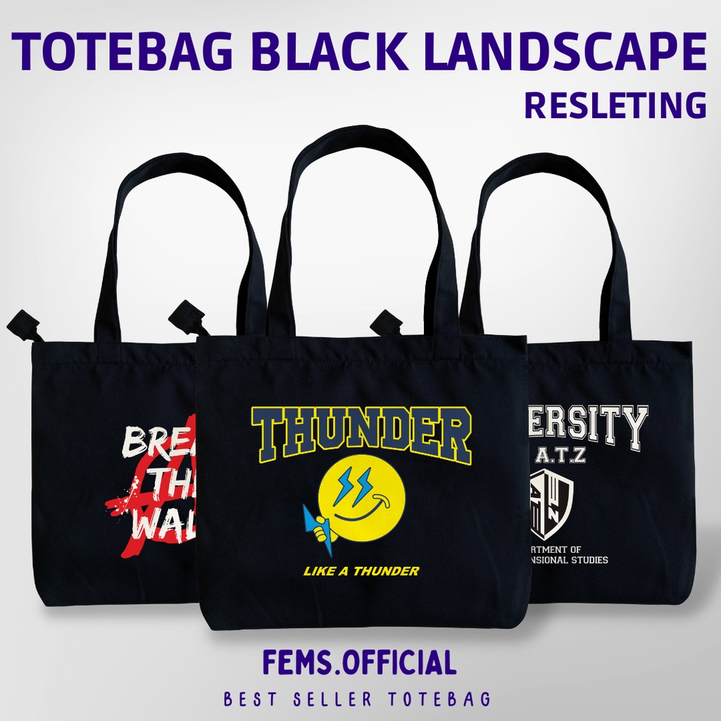 Tote bag Landscape Kanvas Twill Hitam ATEEZ Totebag Kpop Tutup Resleting