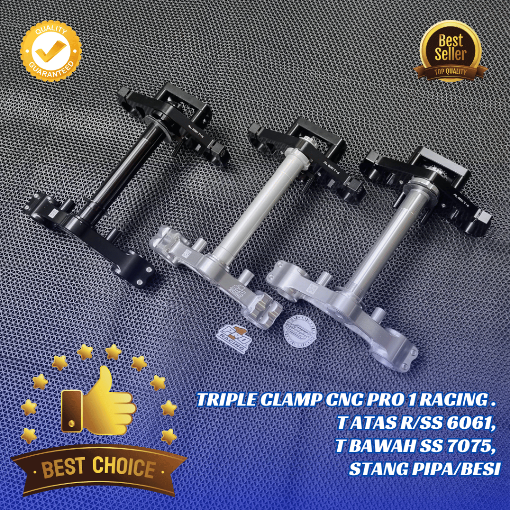 SEGITIGA ATAS R/SS 6061 + SEGITIGA BAWAH SS 7075 STANG PIPA/BESI CNC PRO 1 RACING