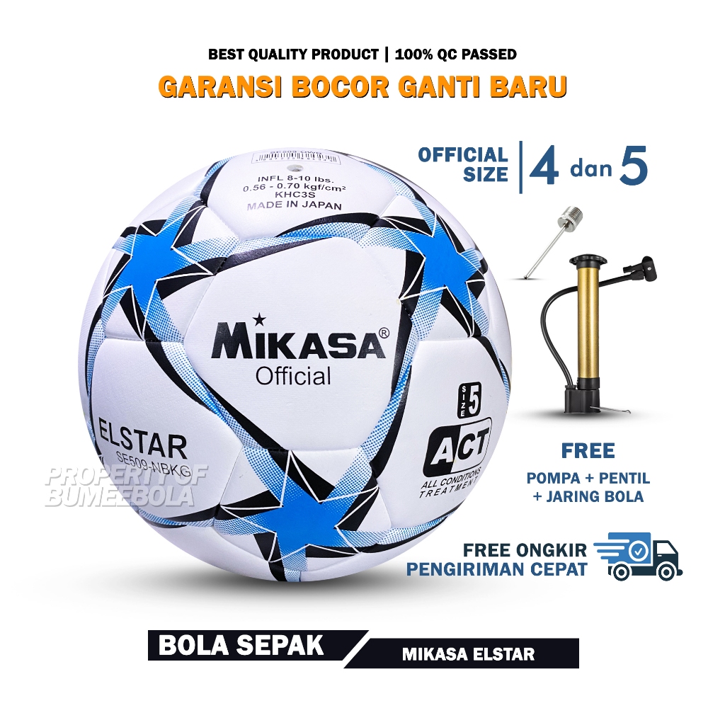 ALL BRAND - Bola Sepak Size 4 Size 5 Jahit Mesin Bahan Premium | Bola Kaki | Gratis Pompa Pentil