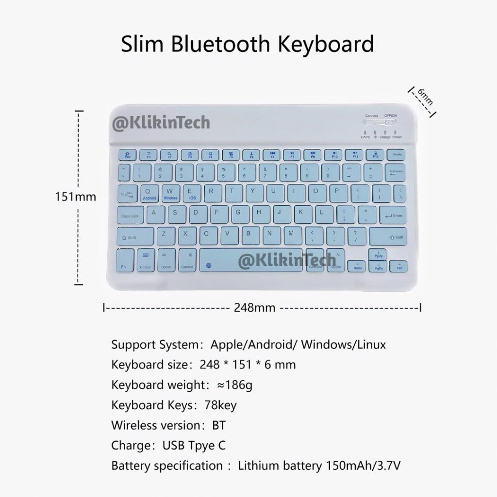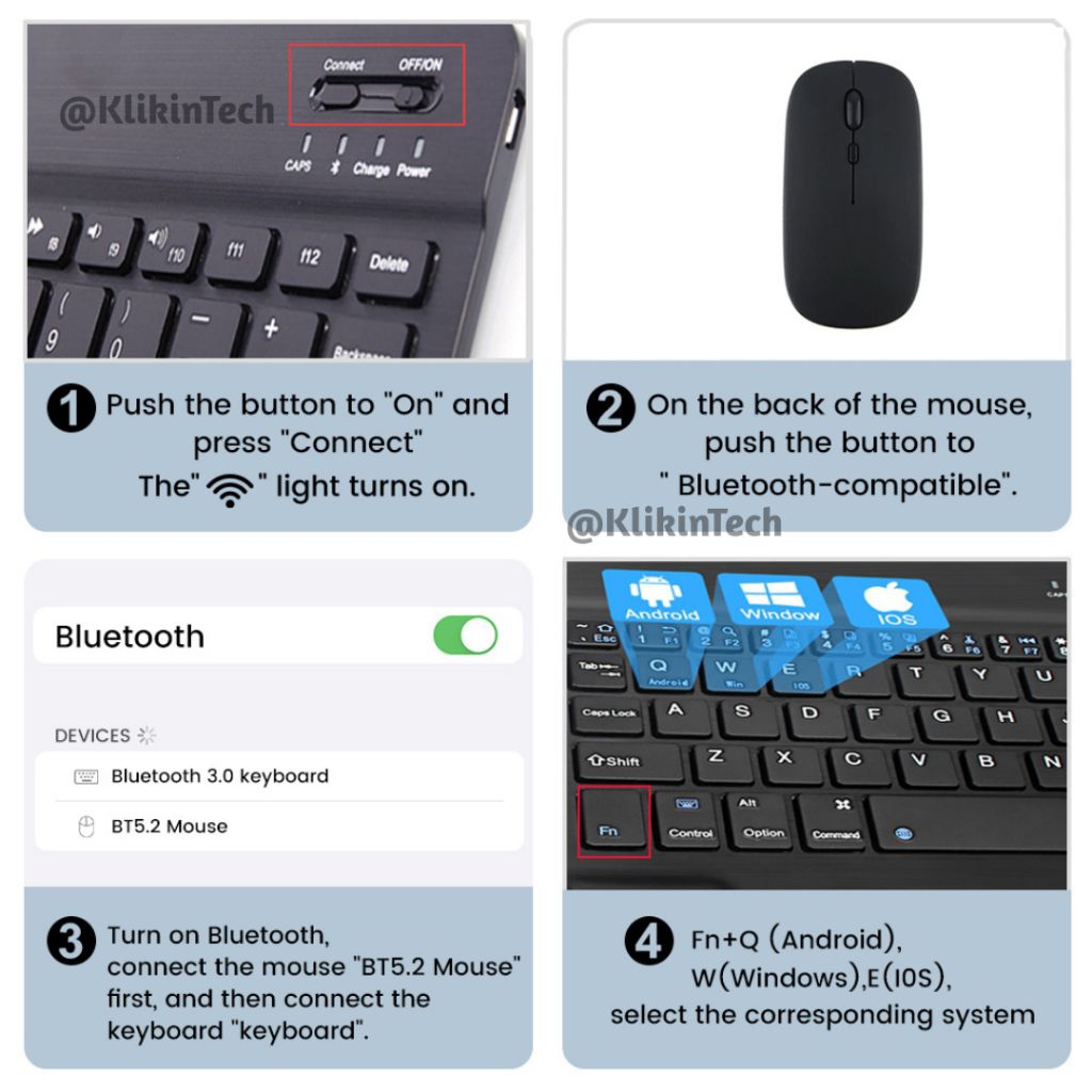 Keyboard Bluetooth dan Mouse Wireless 10 Inch Lightweight Portable PC Tablet IOS Android HP