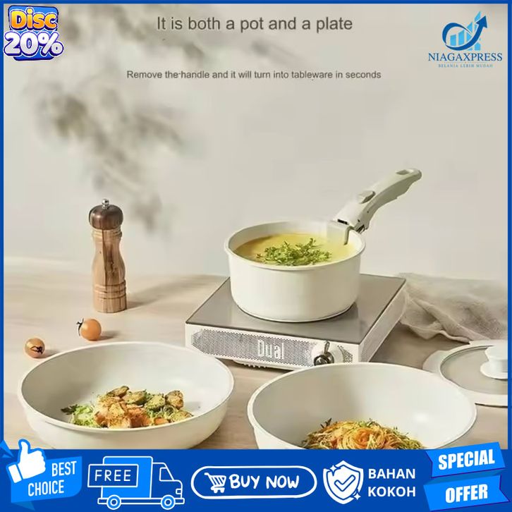 Peralatan Masak Wajan dan Panci Set 5 pcs Wajan Anti Lengket Gagang Lepas Pasang