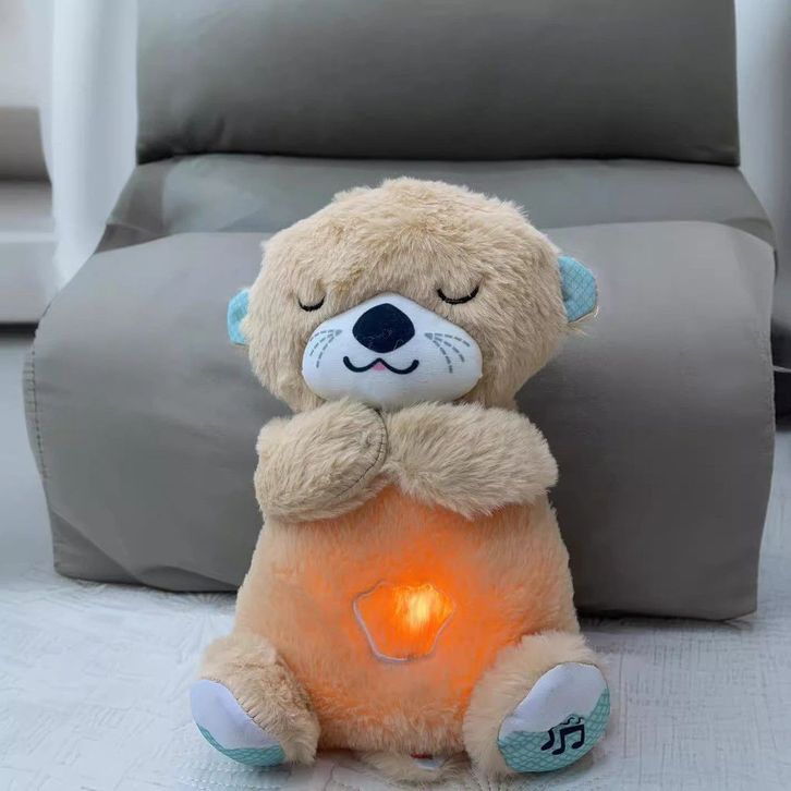 Breathing Little Otter Animal Plush Doll Baby Child Comfort Accompany Music Doll Soft Coax Boneka bercahaya