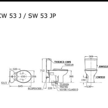 Kloset Duduk TOTO CW53J / SW53JP + TCD-01R komplit set (putih)