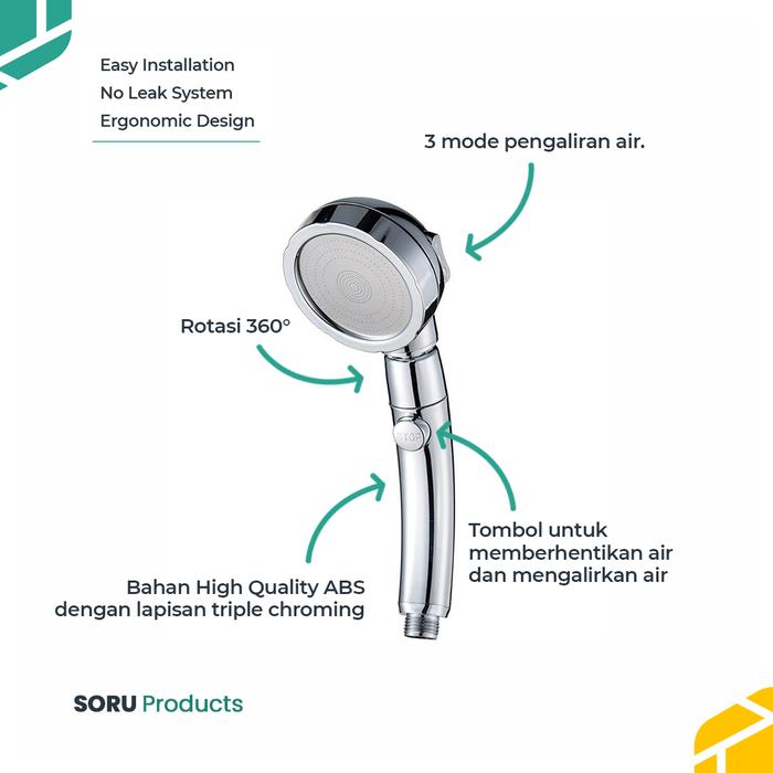 SORU Shower Hand Shower Kamar Mandi 3 Spray Mode