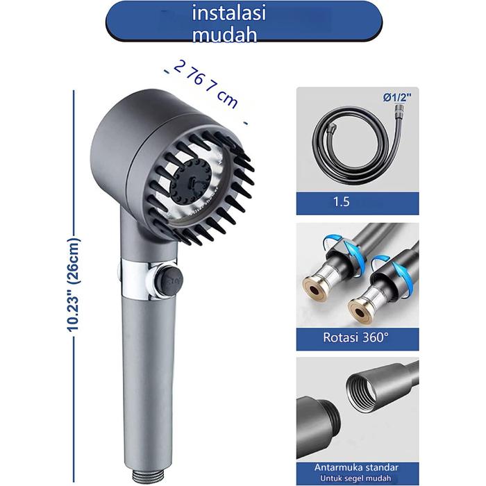 Kepala Shower Turbo With Filter Adjustable High Pressure Water Saving - Kepala Shower