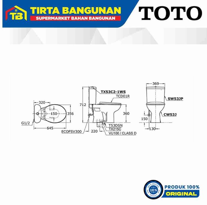 PROMO TOTO CW53J / SW53JP TCD-01R KLOSET / CLOSET / WC / TOILET DUDUK SINGLE FLUSH AS 220 MM - TANPA PACKING KAYU