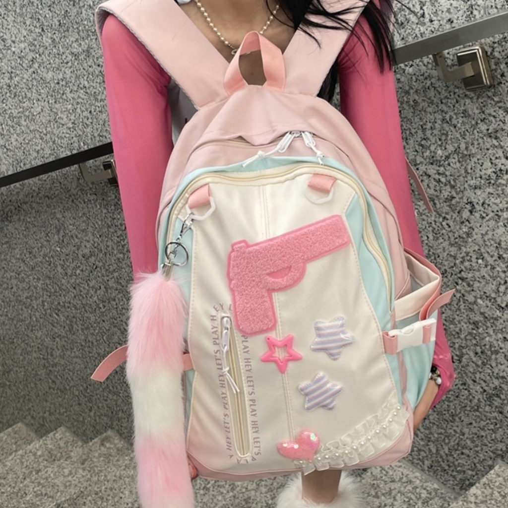 Tas Sekolah lucu wanita Tas Bahu Kapasitas Besar Merah Muda korea import fashion kuliah tas ransel laptop volume tinggi