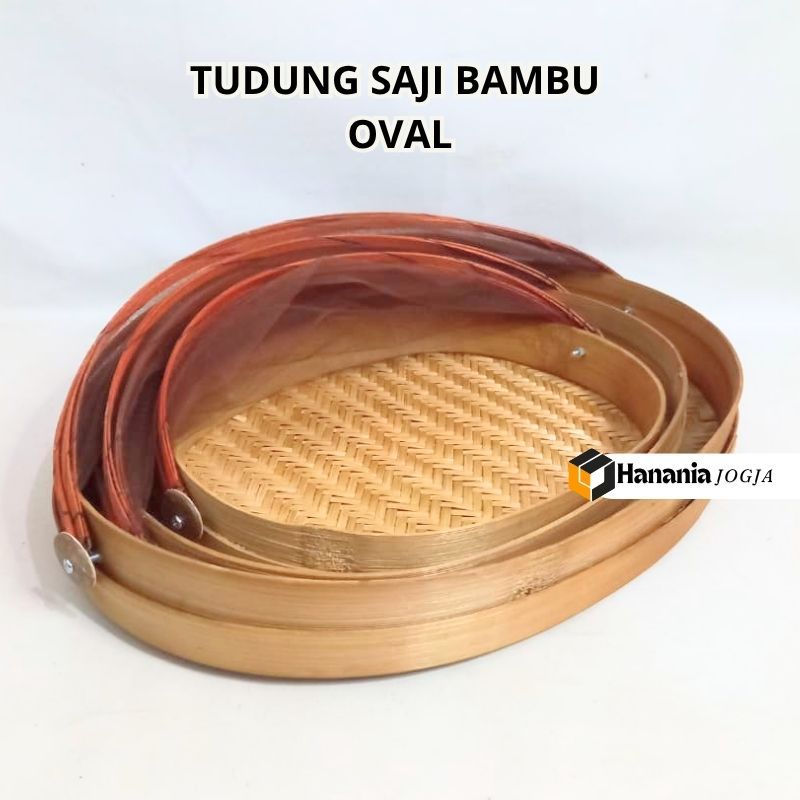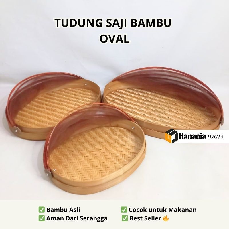 Tudung Saji Bambu Oval 1 Set Isi 3 | Tudung Saji Anyaman Tradisional Elegan | Penutup Makanan Anti Serangga