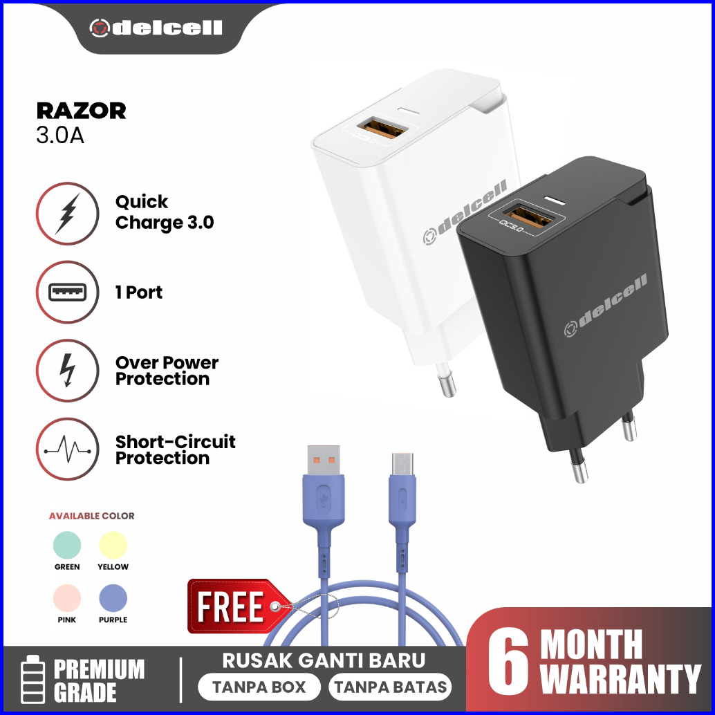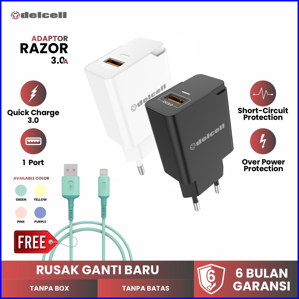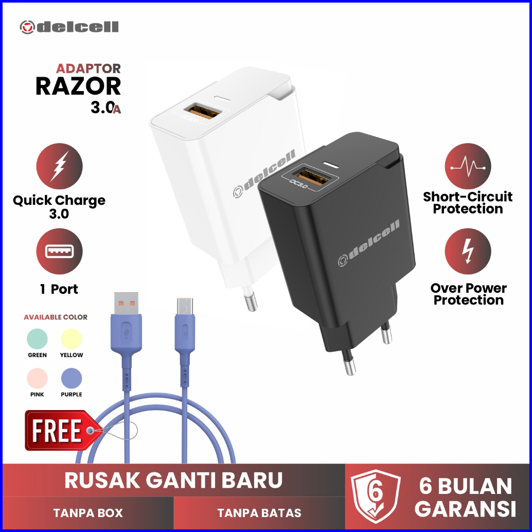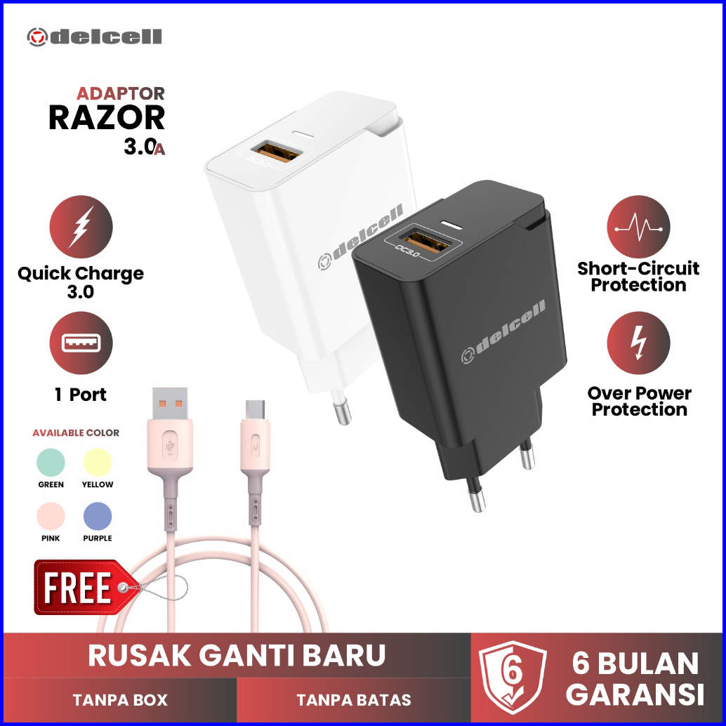 Delcell Adaptor Razor Qc 3.0 Fast Charging With Kabel Zaxti Butter 10w