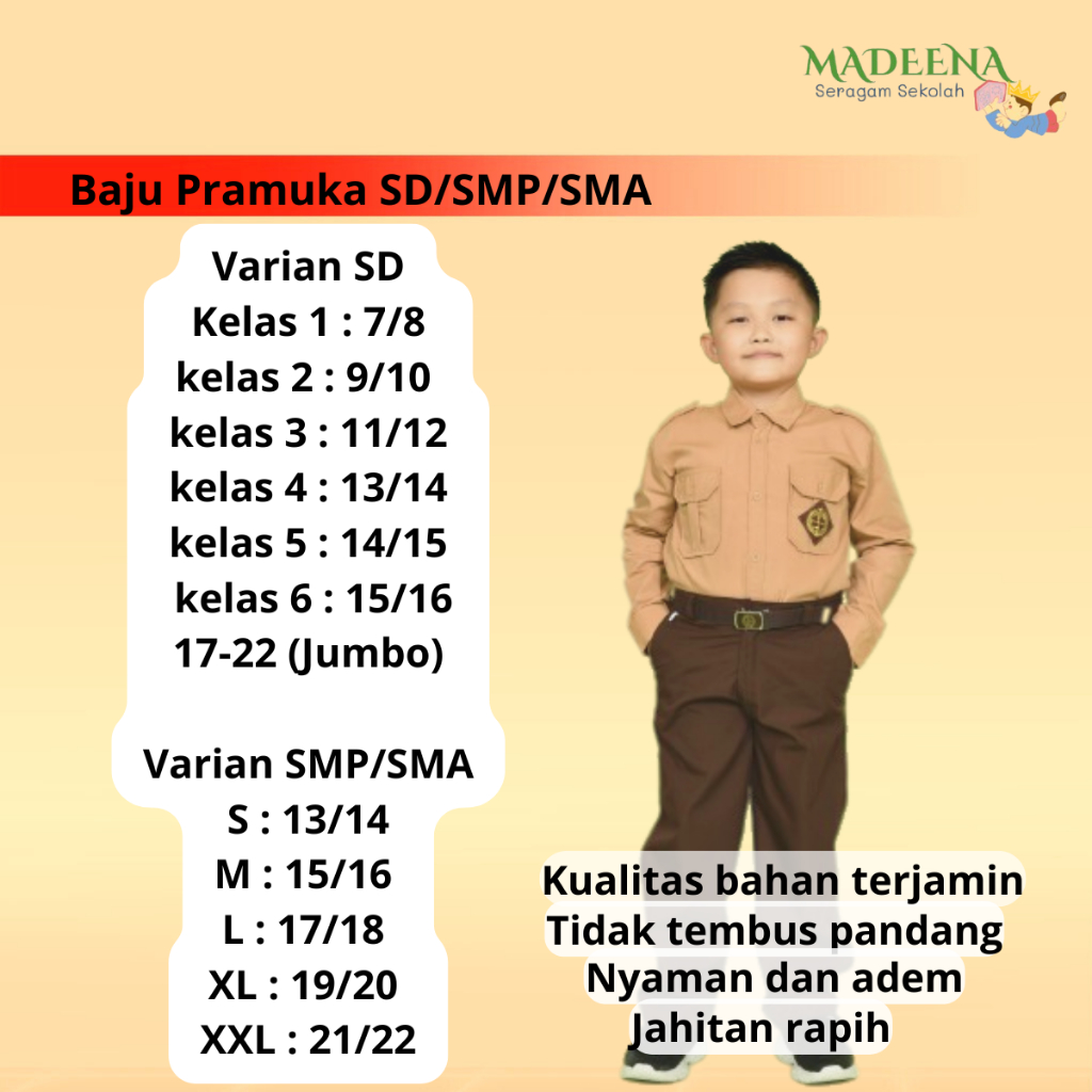 Baju Kemeja Pramuka Seragam Sekolah SD SMP SMA SMK Panjang Laki dan Perempuan