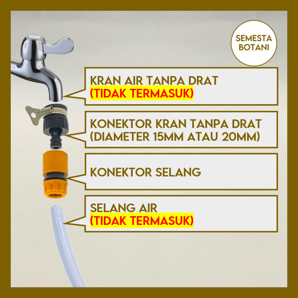 Konektor Kran Tanpa Drat Selang Air 3/16 1/4 5/16 3/8 1/2 5/8 3/4 1 inch Quick Release