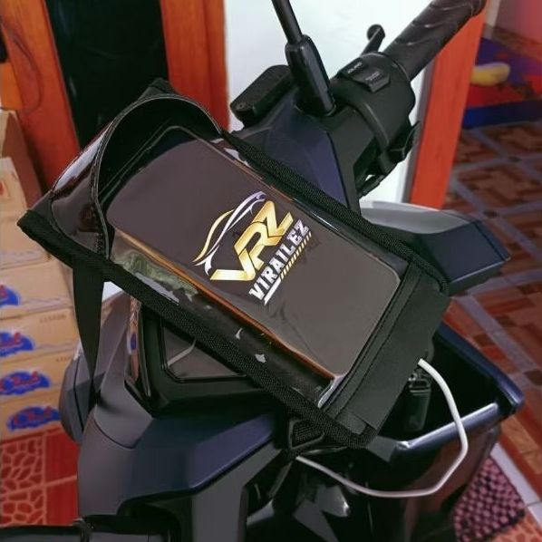 Holder Hp Di Motor Waterproof Ada Lubang Cas dan Kanopi Bahan Kulit Sintetis Anti air