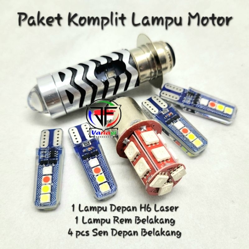 Paket HEMAT Komplit Combo Lampu Motor H6 Laser Putih Kuning + Lampu Rem 13 Mata LED + Sen 4 Pcs Depan Belakang Universal