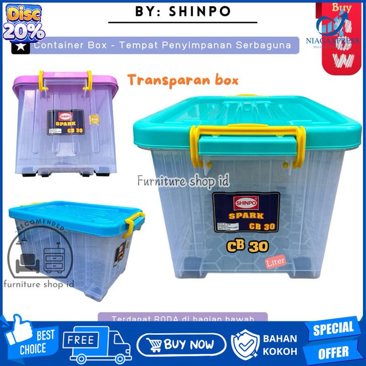 Shinpo - Box Cb 30 Liter Transparan + Roda - Container Box Penyimpanan Serbaguna