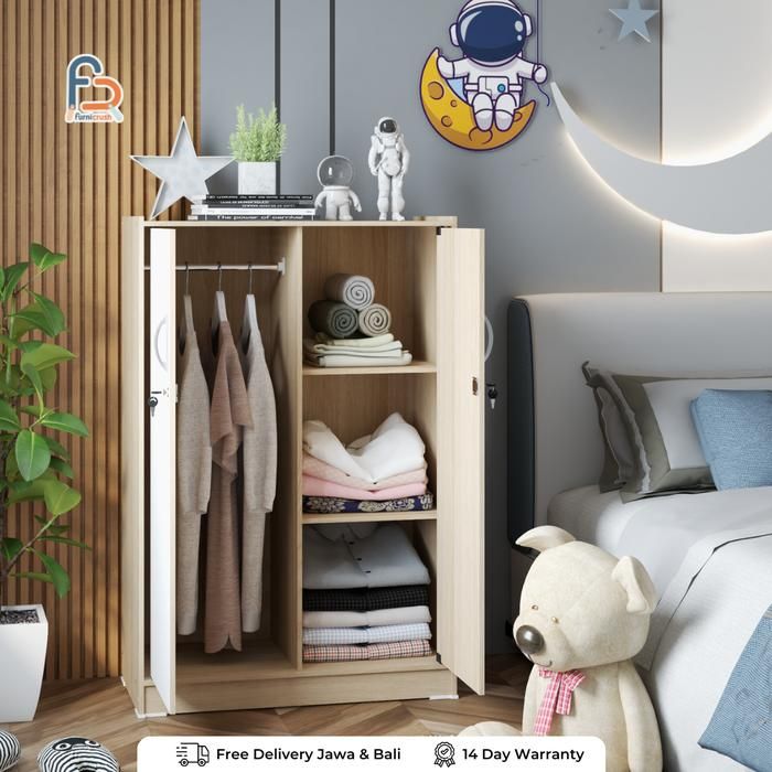 Furnicrush Lemari Pakaian Anak - Lemari Pakaian Kecil 2 Pintu - CAMILLE BL 204 - Natural Oak - White