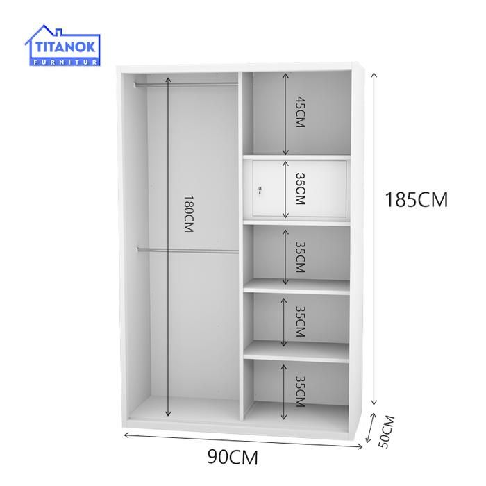 Lemari TiTanok- Lemari Pakaian Besi 2 Pintu Slidding 90cm Wardrobe Steel Cermin Minimalis - M01 1