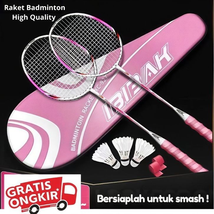 Free Dus Packing Raket Badminton Paket Komplit/ Raket Bulu Tangkis Isi 2 /Raket Bulutangkis/Shuttlecock/Kok Badminton Co